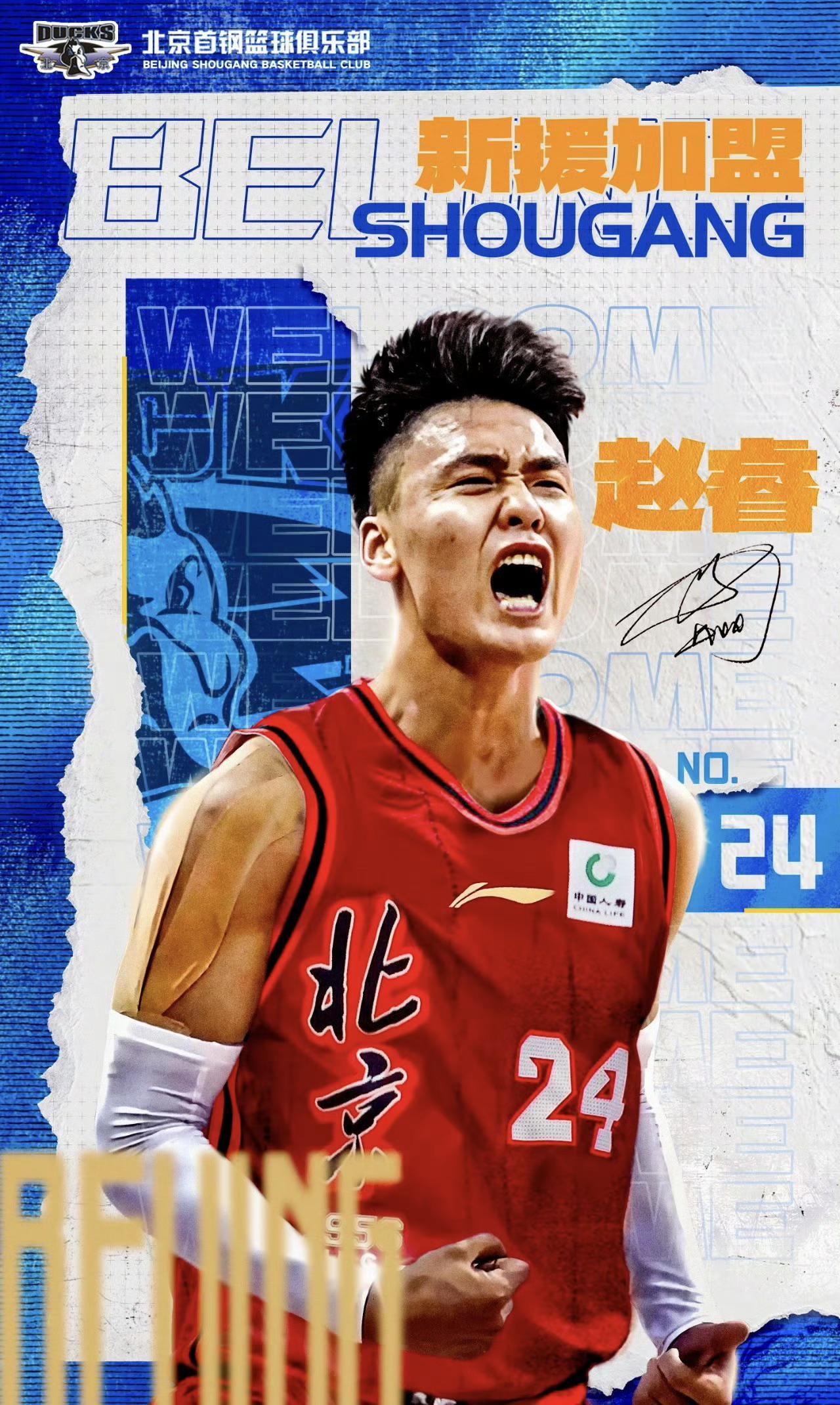 雷速体育8月29日讯 北京男篮今日在社交媒体上,宣布赵睿正式加盟球队。