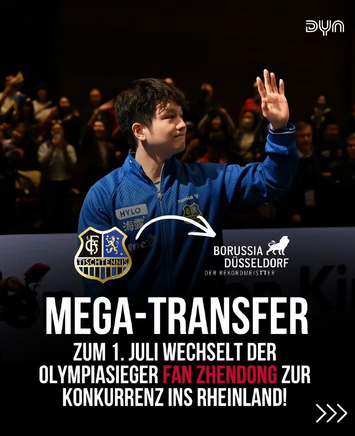 北京时间3月16日,德甲乒乓球俱乐部萨尔布吕肯官方宣布,中国球员樊振东下赛季将加盟杜塞尔多夫队。尽管俱乐部对他的离开感到遗憾,但更多的是对这段合作的深深感激。能够与这样一位世界级的顶尖球员合作一年,对俱乐部来说是一段独一无二的经历。从双方合作的一开始俱乐部就知道这只是为期一年的合作关系。